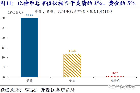 (2)与黄金等避险资产相比,比特币波动率高、流动性差、市值非常小;回溯历史数据,风险资产剧烈调整阶段,比特币常常同步大跌。历史数据显示,比特币与黄金走势频频背离,与衡量风险偏好的VIX指数也无稳健相关关系。2018年以来,美股标普500指数先后经历了3次剧烈调整,跌幅分别达到8.5%、19.1%、33.7%;同期,比特币分别大幅下跌21.6%、37.5%、32.4%,表现远不如黄金等避险资产。