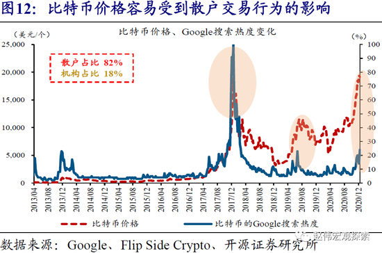 (5)长期而言,比特币能否真正成为全球性“保值货币”,与数字货币发展、监管政策变化等密切相关。比特币目前合法性未被广泛承认,在大部分国家游离于法律和监管的灰色地带。同时,已经有越来越多的央行积极参与到法定数字货币的研究中,中国央行更是在2020年率先试点官方数字货币。对于比特币而言,能否取得合法地位及不被有国家主权背书的数字货币替代,将直接决定长期价格表现。