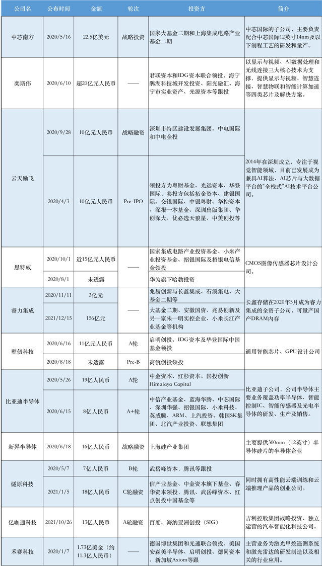 此外,产业投资方也是2020年半导体投资市场重要的参与方,包括中芯国际(00981)的聚源资本、华为旗下的哈勃投资、小米(01810)的长江基金、京东方背景的芯动能、海康威视的中电海康以及OPPO、Intel都在半导体领域有所布局。