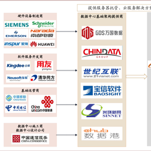 各行业的旺盛数据需求共同拉动IDC行业高速发展。从整个IDC产业链看,IDC服务商位于产业链中上游,向上游采购UPS、空调主机、配电设备、发电机、机柜等配套设施和网络带宽,向下游互联网公司、云计算厂商、政企客户提供IDC服务器托管等基础设施服务。