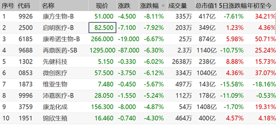 医药股集体扑街,B类股成重灾区,康方生物跌超8%,启明医疗跌7.9%,康希诺跌近7%,再鼎医药跌6.3%,沛嘉医疗跌5%。
