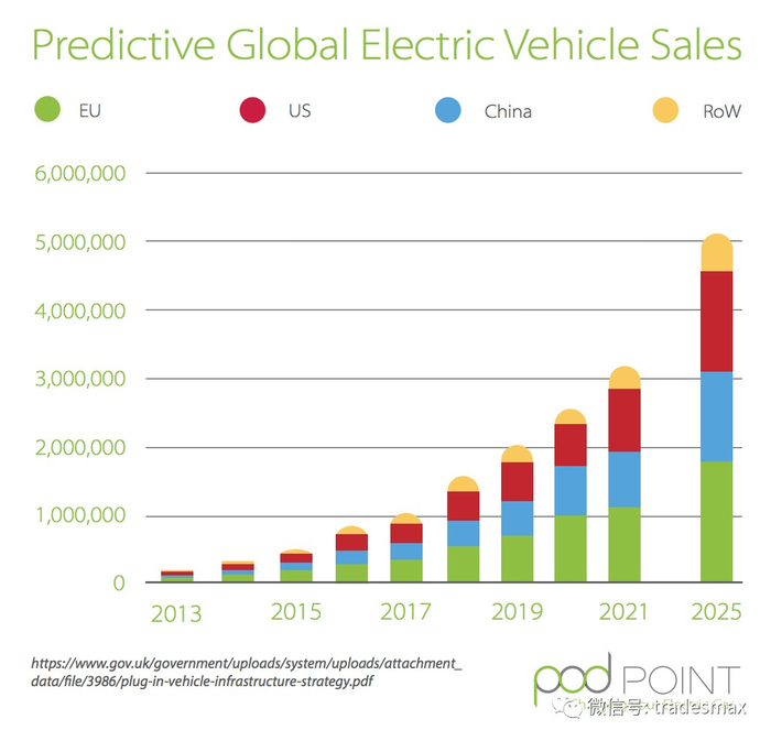 整体来说,欧洲与美国市场在电动车行业这个领域,预计接来下的十年都是高速增长的,但是由于欧洲整体上对于减少碳排放的规定更加严格,所以欧洲市场有着比美国市场更急切的加大电动车占比的需求,相对应的,在政策方面,欧洲相比美国也为这类行业提供了更多的国家补贴。