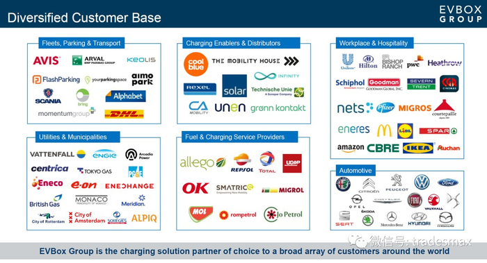 在产品方面主要是直流,交流充电站。在欧洲充电站市场中,EVBOX直流充电桩占据了欧洲35%的市场份额,他的交流充电桩占据了欧洲25%的市场份额。
