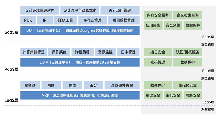 可以看到,从Infra的IaaS,到云平台的PaaS,再到服务级别的SaaS,客户会越来越轻松,效率越来越高,无需介入设计环境底层、中间层、甚至是环境的配置和维护,如网上购物,几步点击所需菜单,即可进行相关研发;从而有更多精力专注管理研发人员和企业数据来保护和维护知识产权的高度安全。
