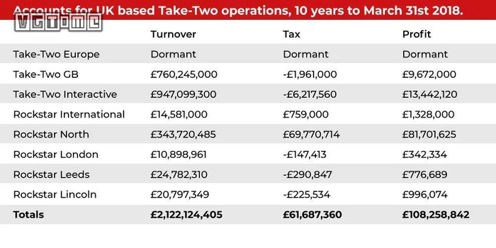 其实 Rockstar North 也是利用低利润的形式少交税,顺便申请英国的税收救济。通过 VGTR,他们在 2016~2018 年间从英国纳税人那里获得了 4200 万英镑的补贴。