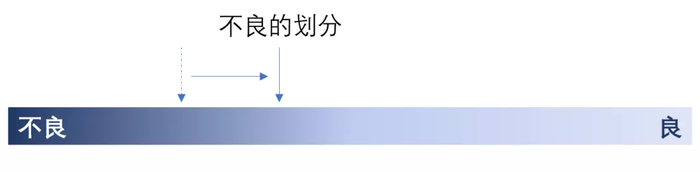 当然,它也可以将不良认定标准设得很松,在图中就体现为边界偏左,于是报表上确认的不良资产就少一些。当然,说更严重点,这种行为也可能是隐藏不良,以便粉饰盈利。