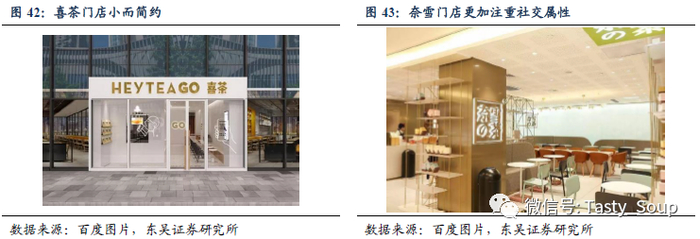 头部品牌多元化店型的多场景差异化竞争。当下的主力消费人群在茶饮市场期望获得更全面的茶饮体验,因此提供定制化优质的客户服务的高端现制茶饮店能有效的吸引并留存客户;此外头部品牌也更注重店面的设计。