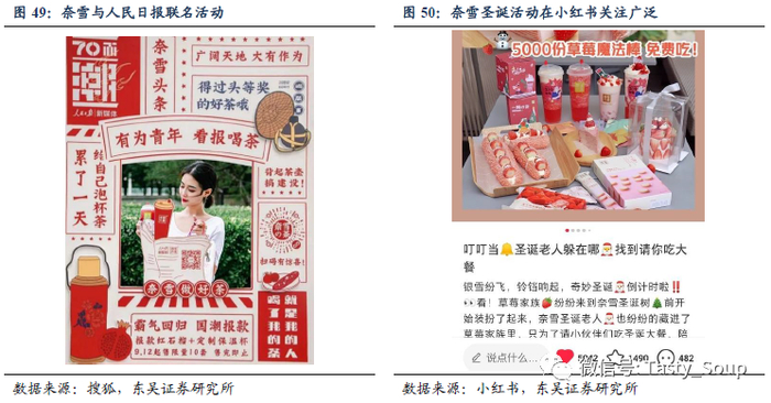 联名+社媒成品牌营销新趋势。近年来,领先品牌的联名产品越来越多。茶饮品牌而言,通过联名和限量款等营销方式有助于挖掘更多的消费客群,同时通过社媒的传播将有效的提升品牌在更大范围内的认知度。