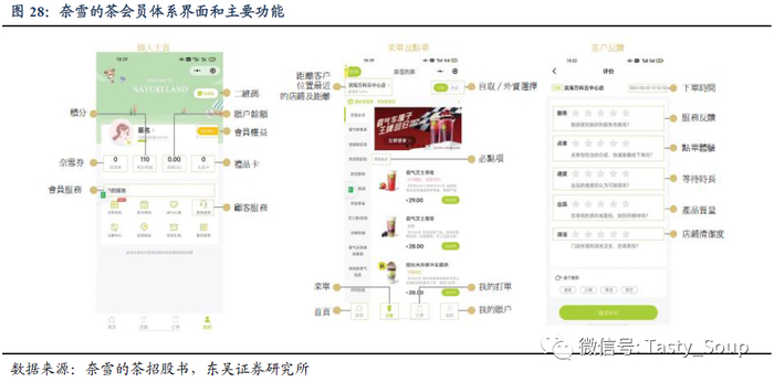 数字化进程推动会员体系发展,大数据留存反哺快速反馈。2018年起,伴随着小程序点单的兴起,新茶饮领先品牌已逐步开始建立数字化会员体系,并为会员提供卓越及个性化的用户体验。除了便利的线上点单工具外,会员也可以享受各种特权和优惠,包括生日折扣、新品试用、免单券等,从而不断激励用户的复购和忠诚度。更为关键的是,通过数字化的会员体系,品牌将能够实现用户数据的留存,以更深入的了解消费者行为和偏好的,并且相应加强CRM管理和更具针对性的产品创新。
