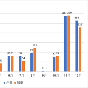 图 1所示为从中国汽车工业协会官网获取的各月《汽车工业经济运行情况》中统计而来的各月燃料电池汽车产销情况。