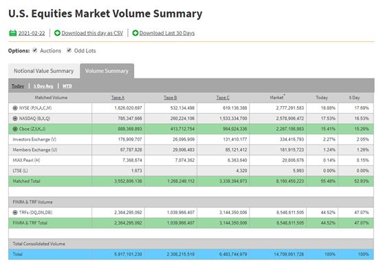 以2月22日的数据为例,美国股票市场单日交易总量为147亿股,交易总价值约6338亿美元。那么Citadel Securities单日经手的交易量为38亿股,处理的交易价值约为1648亿美元,约合一万多亿人民币,相当于沪深两市的成交额了。