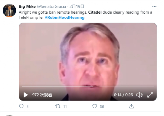 虽然不是直接的控股关系,但也算有利益牵连了,所以在最近一场听证会上,Citadel成为了质疑的焦点。听证会上,格里芬否认曾指使Robinhood限制股票交易,说是在Robinhood宣布交易中止后才知道的。