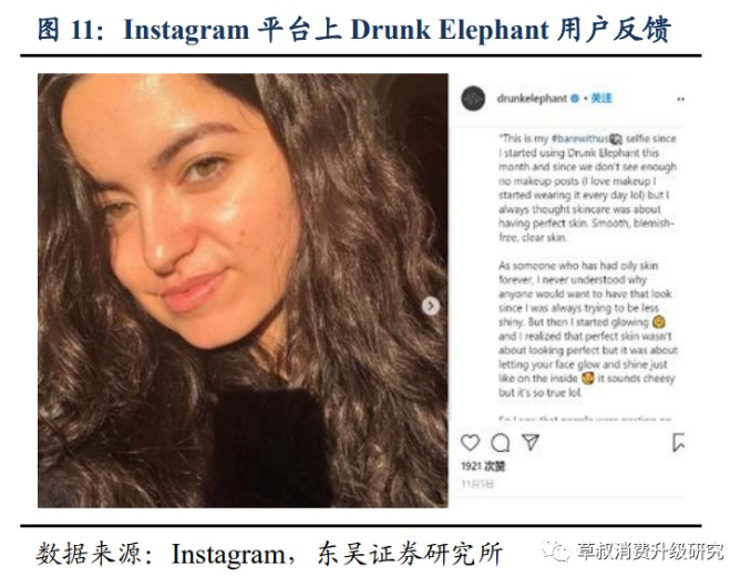 美国功能性护肤品营销方式趋于多样化,社交媒体成为营销新阵地。较早成立的功能性护肤品品牌大多采取相对传统的电视广告、代言人、线下硬广等方式,例如艾惟诺花费千万美金聘请“美国甜心”珍妮弗·安妮斯顿作为品牌代言人,肌肤哲理十年来先后与四位公众人物合作推广,ChapStick和Procactive把电视广告视作重要营销方式之一。同时,随着社交媒体兴起,全面社交媒体化下的内容营销或将成为主流。例如,适乐肤近年来将数字营销预算扩大了十倍,与TikTok上500万粉丝量级的美妆KOL的合作反响较好。Drunk Elephant的快速崛起,除了独特的产品理念以及吸引眼球的包装,还离不开KOL、美妆博主们在Instagram、Youtube等社交平台上对其产品的评测和赞誉。