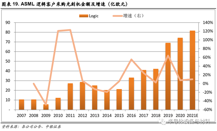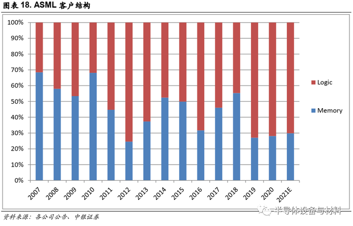 4、客户结构:ASML逻辑客户收入贡献比例7成,但存储客户的采购额2020年实现同比正增长
