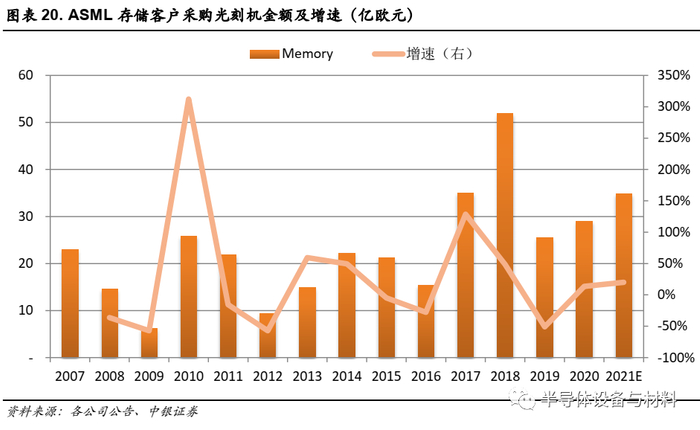 存储客户2020年收入29亿欧元同比增长14%,预计2021年同比增长20%达到35亿欧元,表明3D Nand或DRAM等存储厂资本开支持续恢复增长。