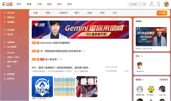 不难发现,斗鱼平台上的所有赛事活动、娱乐综艺等内容均会在鱼吧进行同步,并且吸引用户们在社区内进行周边内容的讨论。这对于平台互动内容的丰富起到了极大的促进作用。