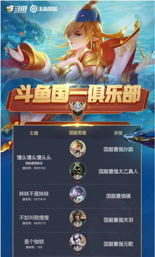 近日,国内领先的游戏直播平台斗鱼(DOYU.US)正式发布了王者荣耀板块的“斗鱼国一俱乐部”,40名斗鱼主播摘得王者荣耀“国服最强”称号。其中,羽辰鸽鸽丶、六六pro分别拿到3个英雄角色的“国服最强”,昧昧不是妹妹、是个枷锁、不如叫我慢慢等16个主播,更是凭借优异的战力表现获得了17个热门英雄的“国服第一”。可以看到,无论玩家们喜欢哪款英雄角色,斗鱼都有最顶尖的主播带来最专业的直播内容。