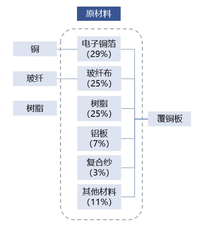 覆铜板原料主要由铜、玻纤、树脂构成。
