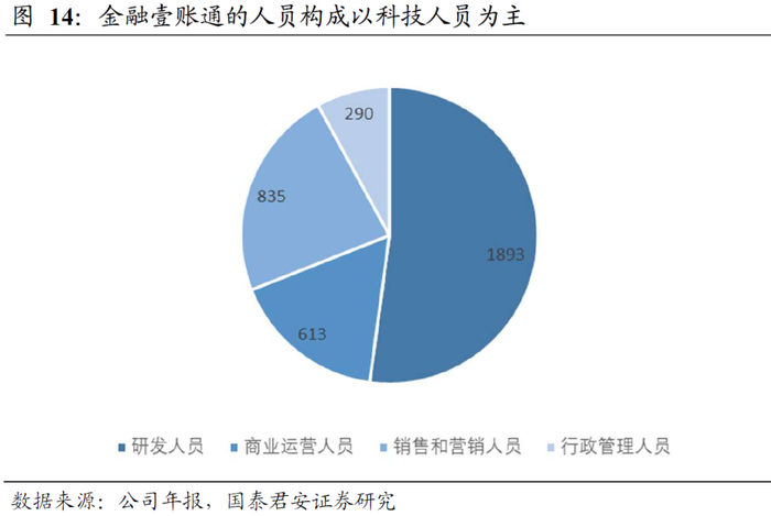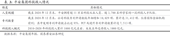 金融壹账通除自身拥有近2000人的庞大研发队伍外,金融壹账通和平安集团共同开展联合研发,还会长期受益于平安集团的科技能力,而平安集团的科技投入在国内金融机构中处于领先水平。