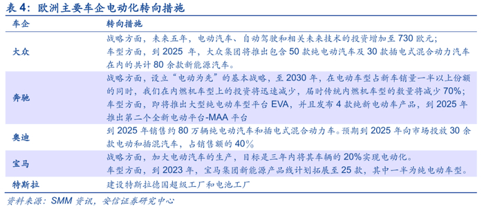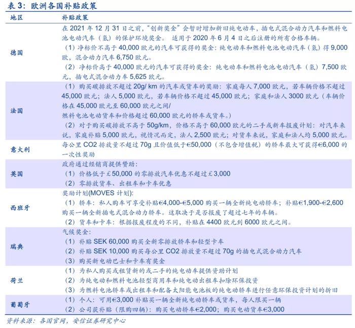 我们认为,2021年后即使欧盟补贴力度出现退坡,对欧洲新能源汽车整体发展趋势的影响也相对有限,一是考虑大众(VWAGY.US)等领头车企及配套产业在电动化方面大幅转向,欧洲供给侧质量将不断优化,二是欧洲节能环保意识深入人心,即使补贴力度有所衰减也难改电动化大势。
