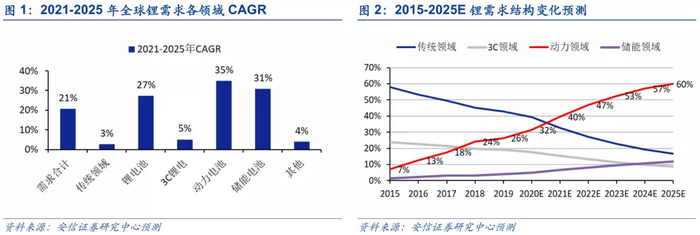 1.1. 需求侧:动力电池和储能领域将驱动全球锂需求2021-2025年高速增长