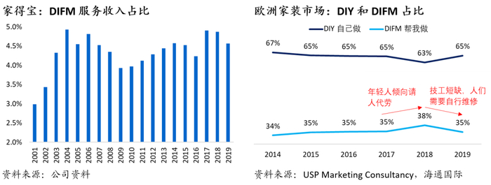 美国家装长期稳定向好,疫情加速DIY渗透率。除了次贷危机之外,其余时间都能保持成长,更在1983-2006年创造了连续超过20年的增长势头,过去十年复合增长率为4-5%,市场萎缩速度最快的2007年也仅仅下降了6%,美国居民生活品质不断提升以及房屋老化日益严重,加上疫情加速了家装DIY的渗透率提升,为未来的增长带来了长期正面的影响。