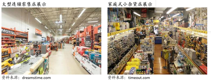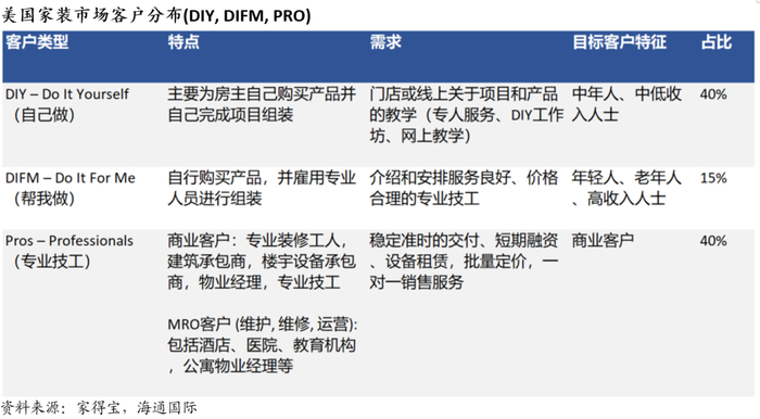 北美专业家装零售行业呈现较为分散的竞争格局,大致可分为三大类: