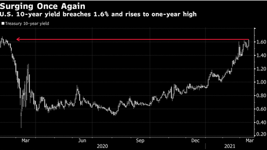 大家都去买买买,于是各种资产价格不断上涨,所以潜在的投资回报机会越大,进而通胀预期增加,大家抛售美债,从而催化美债收益率攀升。