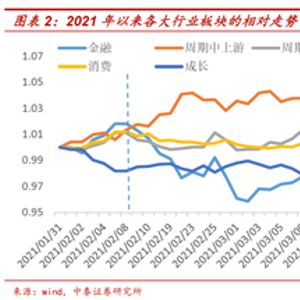 随着疫苗接种加速和欧美疫情形势的好转,市场避险情绪明显下降且对经济复苏的预期大幅提升,2021年春节前后,“抱团”现象开始松动,金融地产、周期板块迎来估值修复行情。年初以来,钢铁(22.1%)、石油石化(14%)、有色金属(9%)涨幅领先市场。