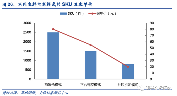 SKU的差异、客单价的差异决定多模式共存,社区团购切入的是高频刚需、性价比消费: