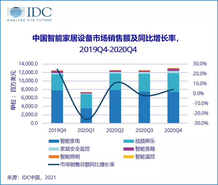 IDC:2020年第四季度中国智能家居市场量额齐涨,呈回暖态势