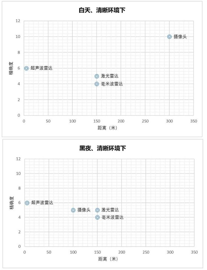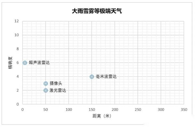 当然,激光雷达的并不是没有用,同属于光学传感器,摄像头和激光雷达在大雨雪雾等极端天气肯定都无计可施,但是在清晰的环境下,激光雷达无论在白天还是黑夜,在中等距离,也就是150米左右,精确度要超过毫米波雷达。