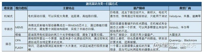 激光雷达总共有三个模块,发射模块、接收模块和扫描模块,一般来说会按照扫描模块的不同扫描方式进行分类。