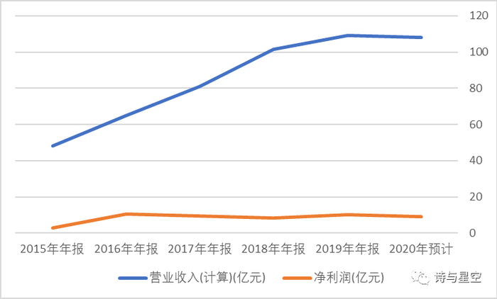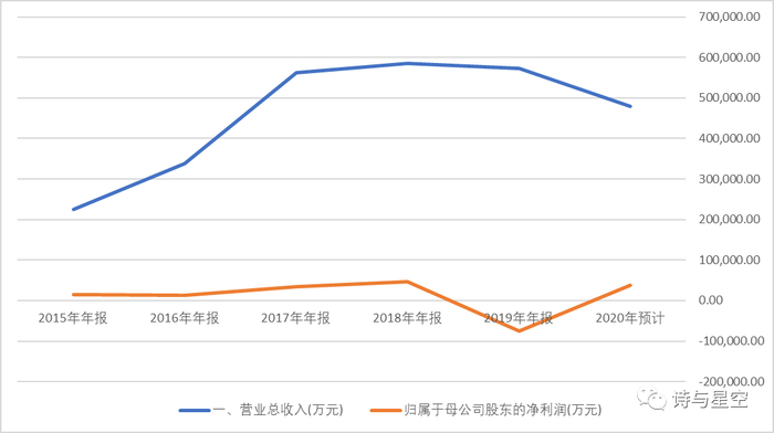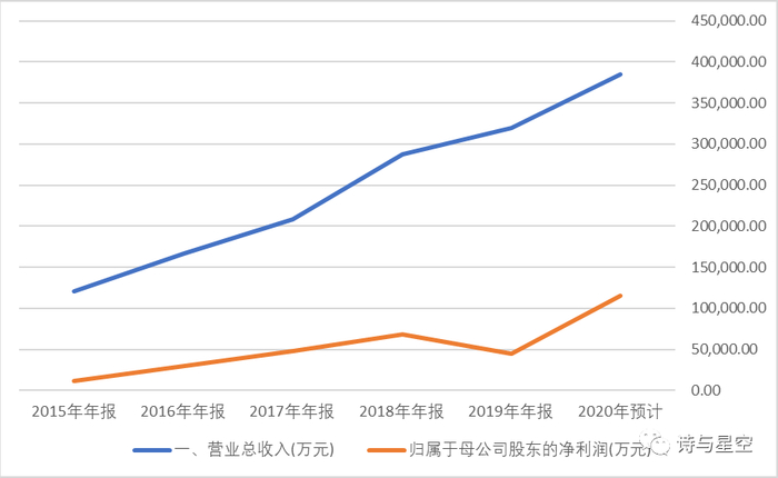 为了进行一个更为清晰的对比,星空君“伪造”了公司2019年的净利润,得出来下面这张图: