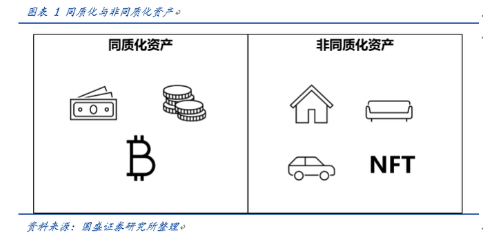 而非同质化资产,例如房子、汽车、家具、艺术品、数据资产等绝大部分资产,他们的特点在于不能进行分割,且并不是完全相同的。不难发现,现实世界中的大部分资产都是非同质化的,艺术品、游戏装备、身份认证等皆属此类。