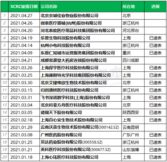 2021年截至4月30日,中国证监会(SCRC)披露的股份有限公司的境外IPO申请: