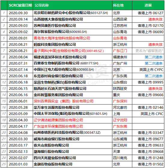 附:2020年全年,中国证监会(SCRC)披露的股份有限公司的境外IPO申请: