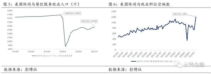 服务业上,美国休闲与餐饮服务业就业人口为1373.6万人,比疫情前低317.9万人,同时,美国休闲与服务、耐用品、非耐用品的职位空缺数为120.9万、36.5万、34.1万,达到了历史最高点。用工需求空缺与就业人数不足同时存在。