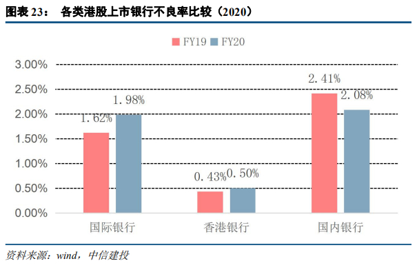 本报告中报综述的港股银行主要包括国际银行,香港银行以及仅在港股上市的国内银行。而A+H的上市银行的年报综述已经在银行业20年年报综述《轻装上阵,基本面确定性向上》中讨论。