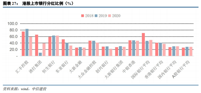 (一)分红比例:国际银行恢复派息,香港银行分红率下降