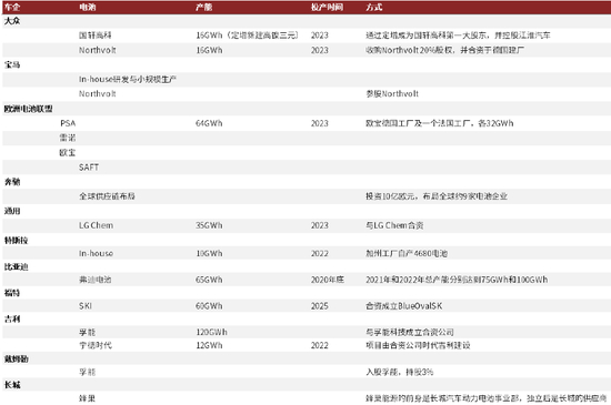 图表:车企布局电池环节规划(截至2021年5月)