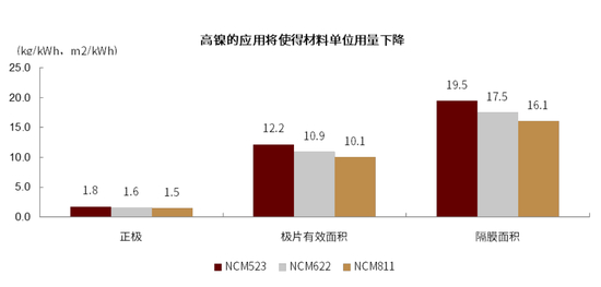 图表: 高镍应用将直接带来各环节材料用量的下降,以推动成本下降