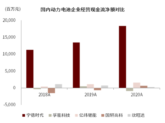 图表:二线电池企业经营现金流整体偏弱