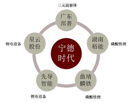 图表:宁德时代与中游股权合作关系