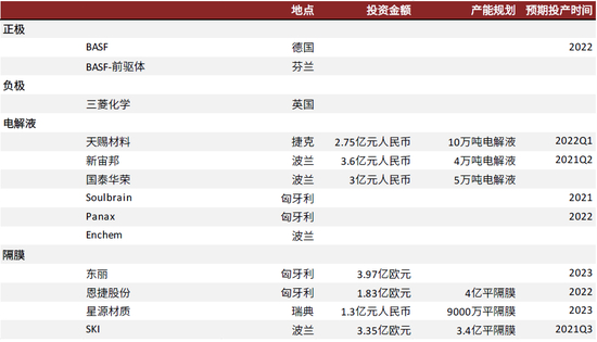 图表:四大材料环节海外产能规划(截至2021年5月)