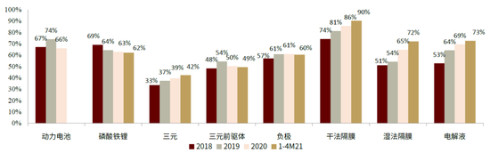 图表:国内市场四大材料环节市场格局(1-4M 21)