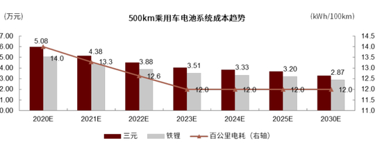 图表: NEDC 500km乘用车电池系统成本测算