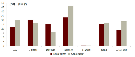 图表:2022年锂电材料新增供需预测
