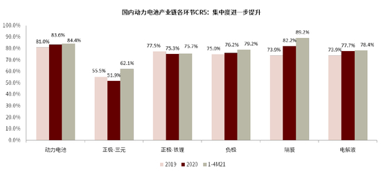 图表:产业链各环节1-4M21集中度进一步提升