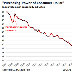 唯一可能“暂时”事件是,物价水平一小段时间内的下跌。这在我一生中只发生过几个季度,例如2008年的最后几个月(如上图所示)。所以我(对长期购买力反弹)不抱希望。
